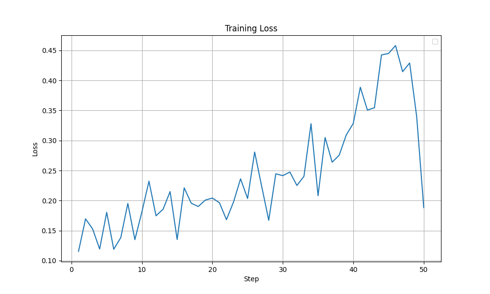 num_generations=8again because of the GPU memory limitations. Maybe setting it to16might produce better results. - Longer training - I ran the training for each configuration for 24 hours, which allowed around 50 steps. Maybe training for longer helps.